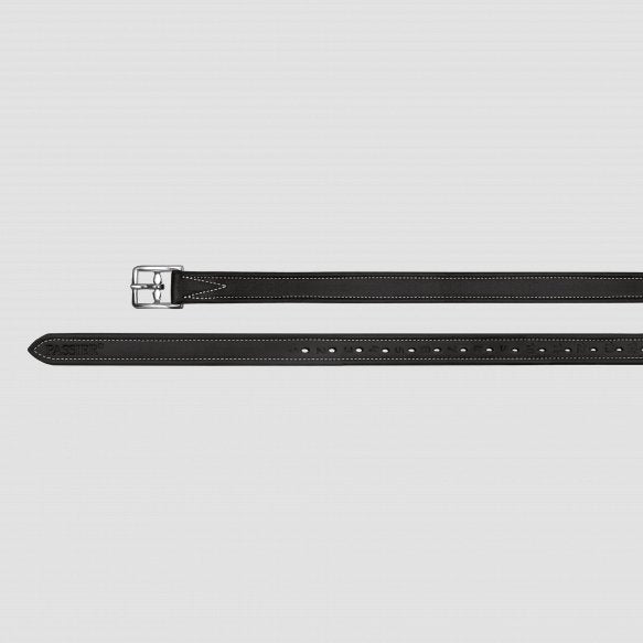 The elegant stirrup leathers with light decorative seams are made of top quality European cow hide. They are named "Velvet Touch Deluxe" because they are velvety soft to the touch. The stirrup leathers are extremely hard-wearing and beneficial because they have a nylon insert and as a result will never stretch, no matter how intensely they are used. To enable very fine adjustment, the stirrup leathers are designed with 25 closely positioned holes. The curved stainless steel buckles adapt perfectly to the saddle and guarantee particularly close contact to the horse. When properly cared for, the stirrup leathers will preserve their outstanding quality for many years to come.